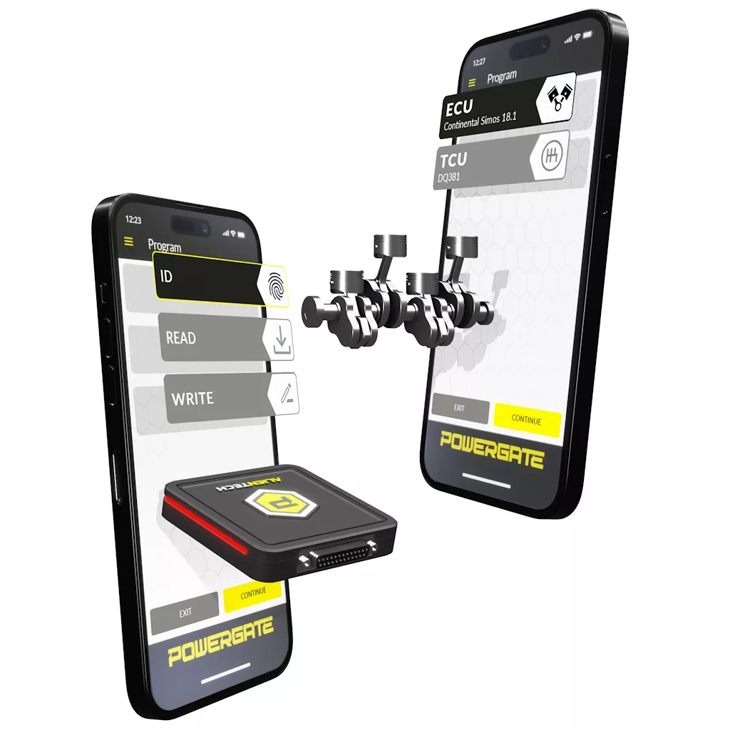 Während der ID- und Lesevorgänge identifiziert und liest das Powergate 4 die spezifischen Daten des Motor-oder Getriebesteuergeräts des Fahrzeugs aus. Dieser Vorgang ist entscheidend, da das Powergate 4 ab diesem Zeitpunkt eindeutig nur mit Ihrem Fahrzeug verknüpft ist und an keinem anderen Fahrzeug mehr funktioniert. Diese obengenannte Verknüpfung kann, wenn man sein Fahrzeug wechselt, nur durch den Erwerb eines „Löschungsguthabens“ aufgehoben werden. Danach kann das Powergate 4 wieder mit einem neuen Fahrzeug verknüpft werden.